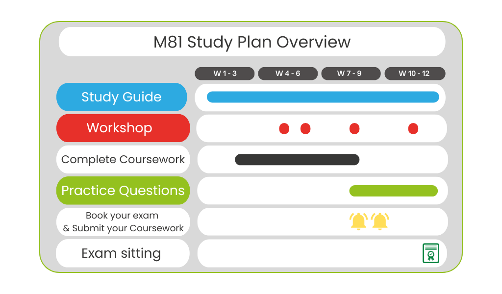 For the M81 module, you will work with an experienced BTS Associate over a series of 4 2-hour technical workshops to consolidate your understanding of all subject areas for the module including the key subject areas with specific focus on those learning outcomes with the heaviest weighting of questions in the exam: